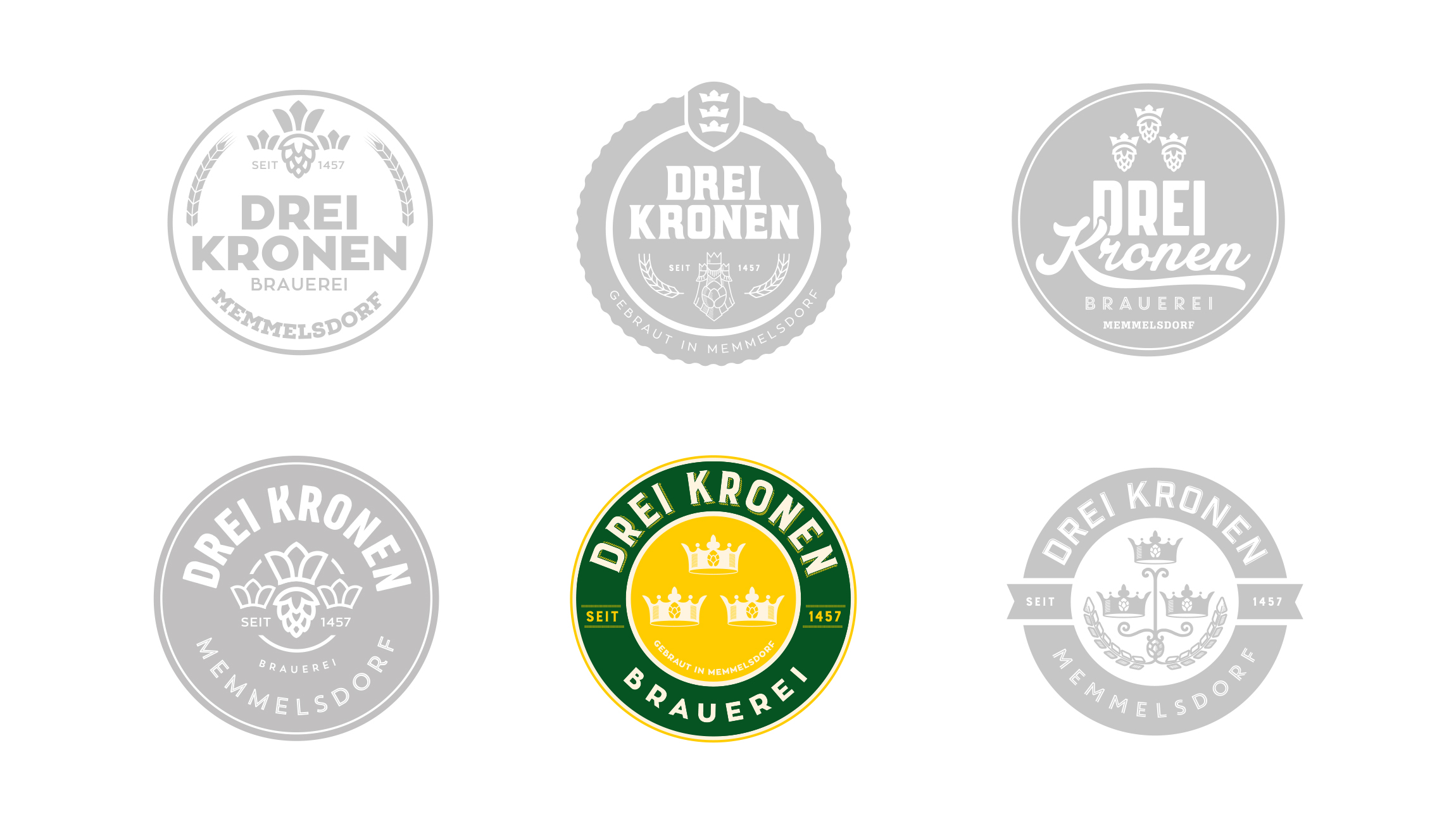 Für die Brauerei Drei Kronen Memmelsdorf entwickelten wir Logo, Illustrationen, Etiketten, Bierkasten und Kampagne. Das Resultat ist eine authentische Serie, die sich wohltuend von herkömmlichem Bierdesign in der Region unterscheidet.