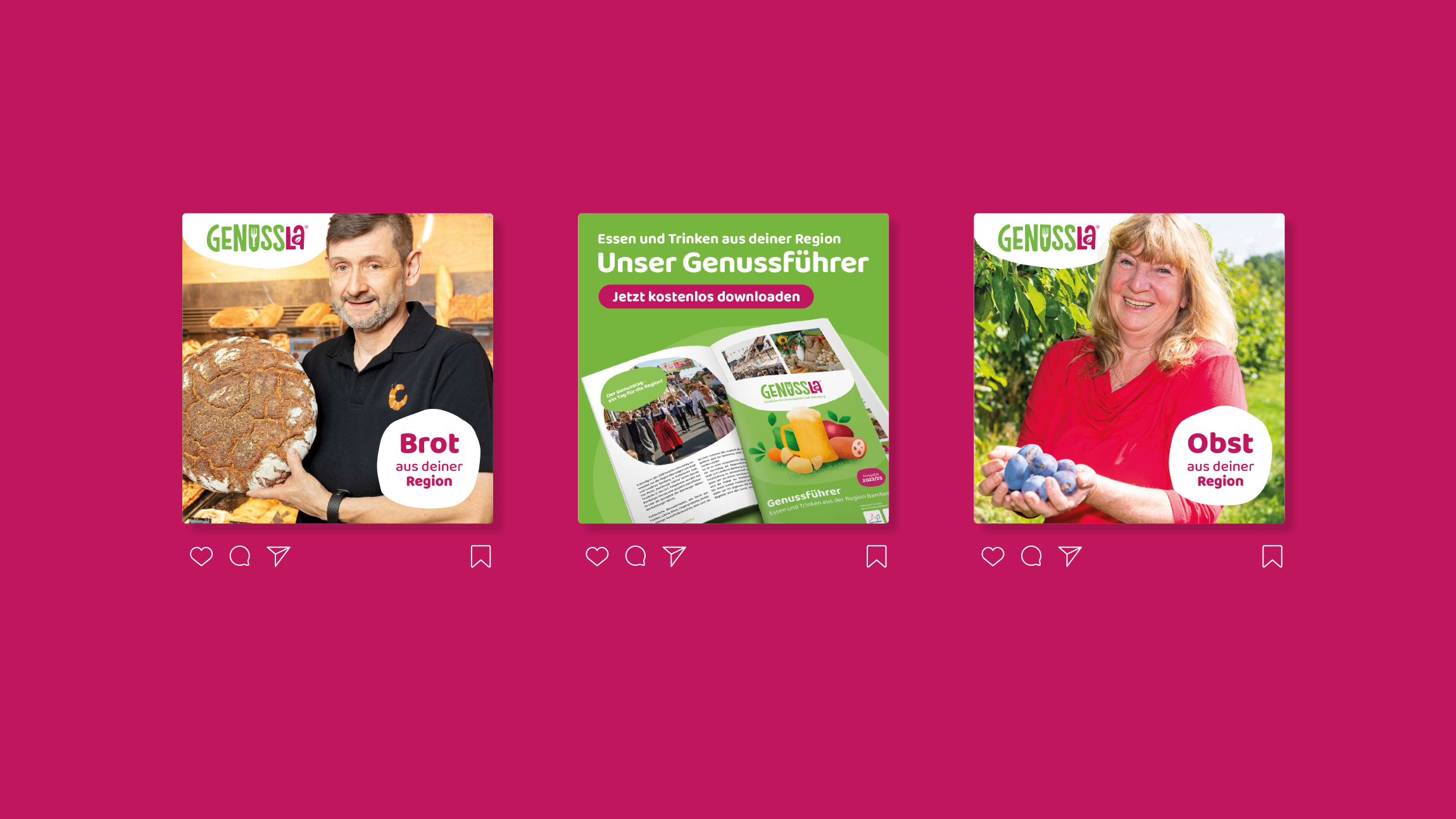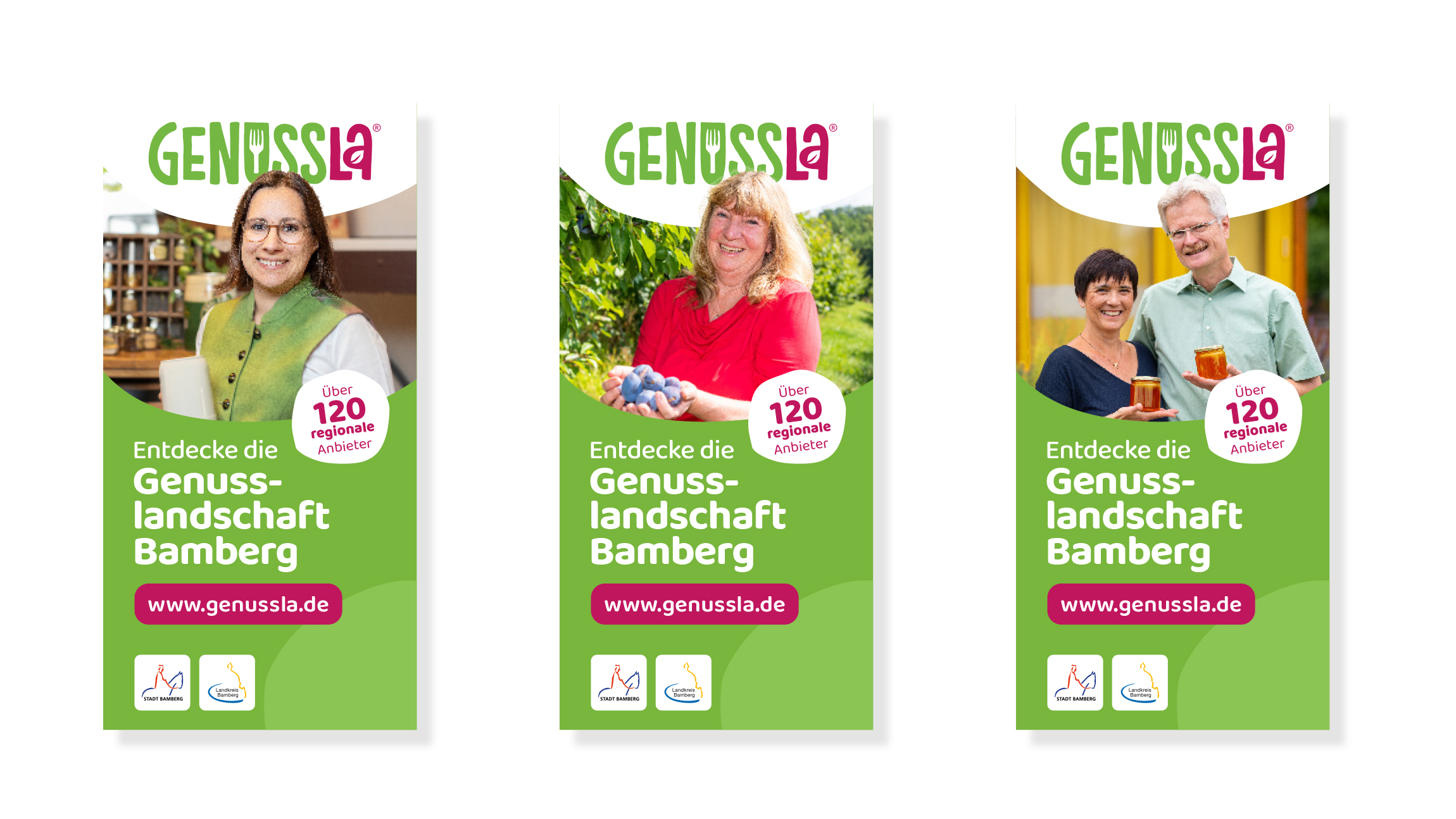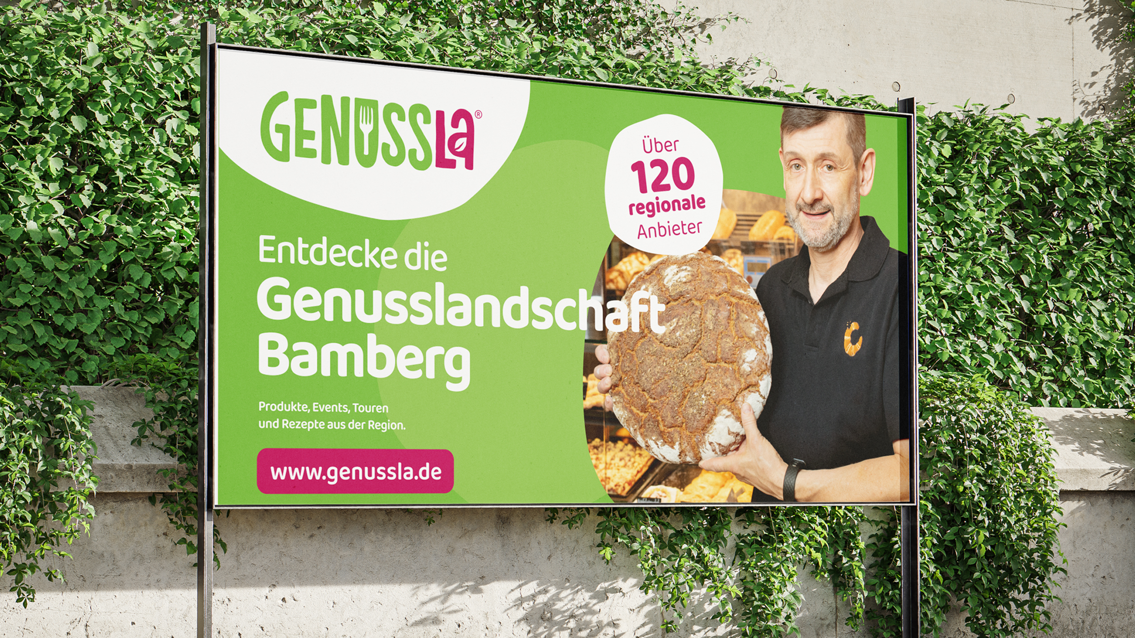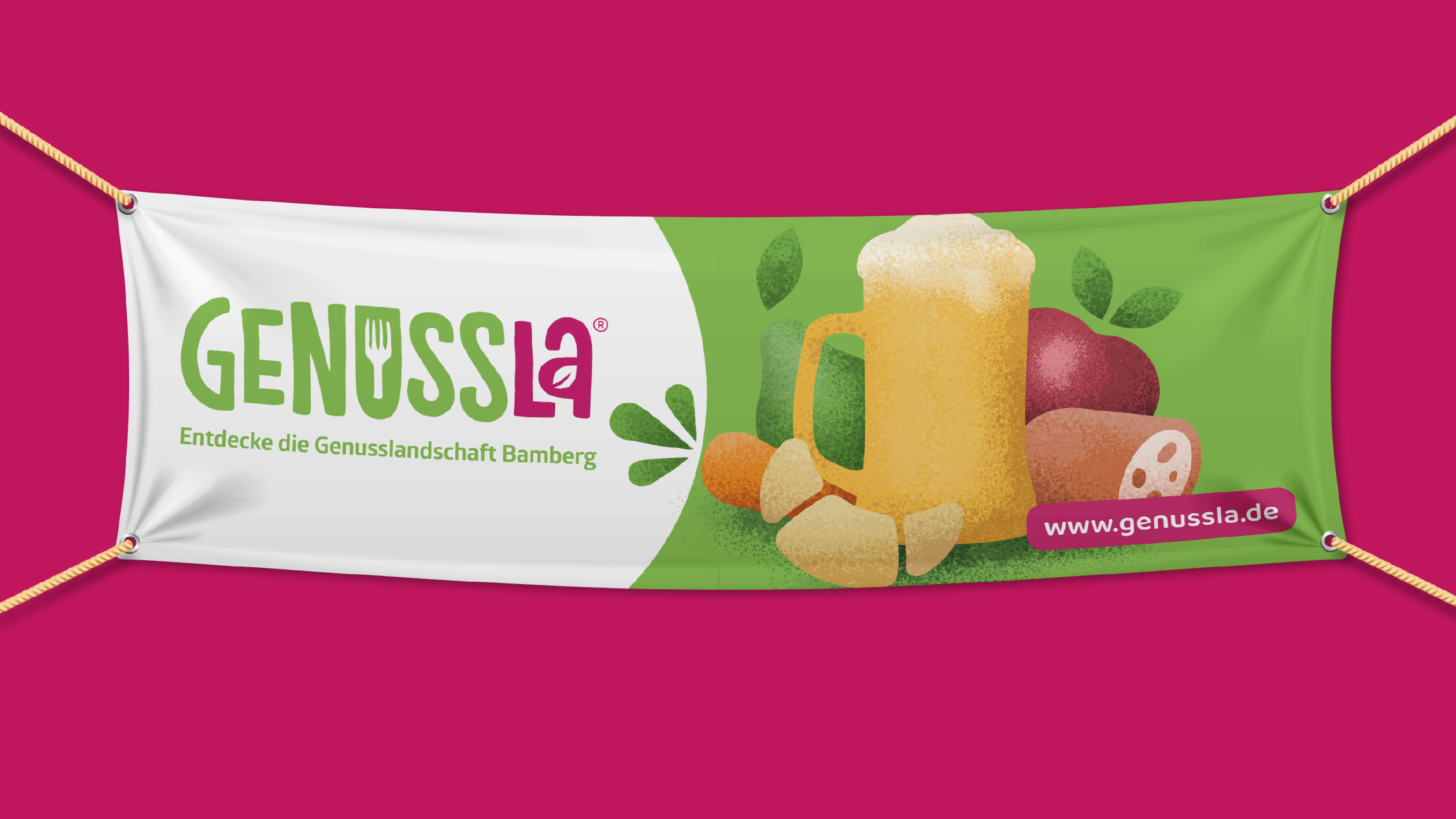 Für das Genussportal des Stadt- und Landkreises Bamberg übernahmen wir die Gestaltung der Marke „Genussla“. Von der Namensfindung über das Logo bis zur Website – ein ganzheitliches Genusserlebnis.