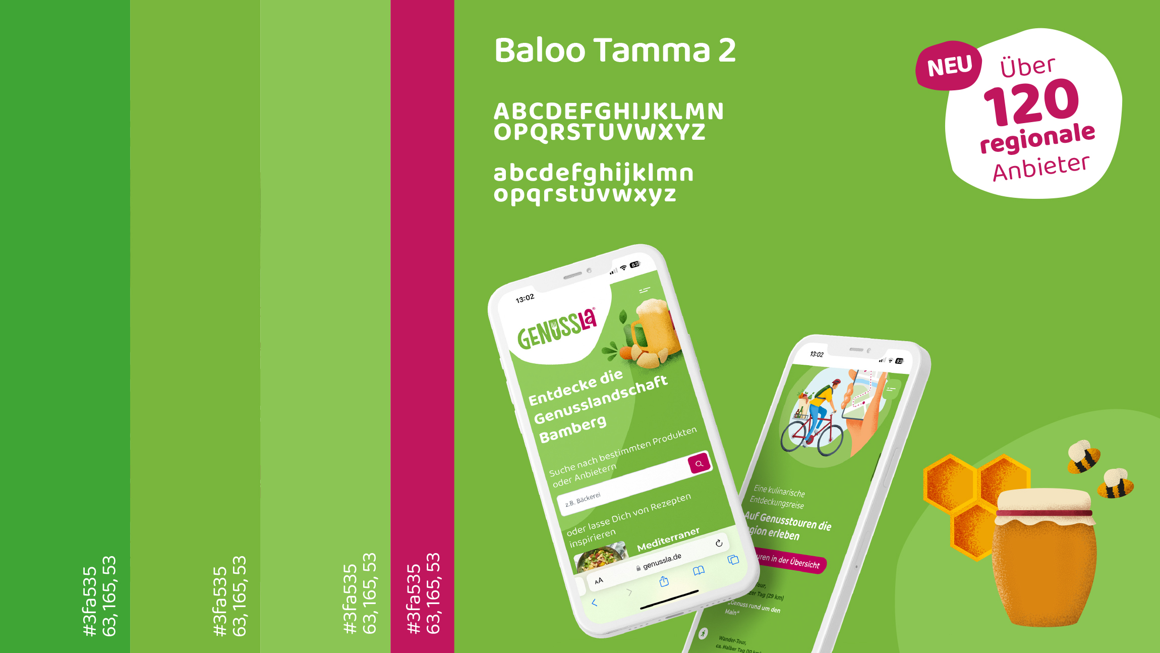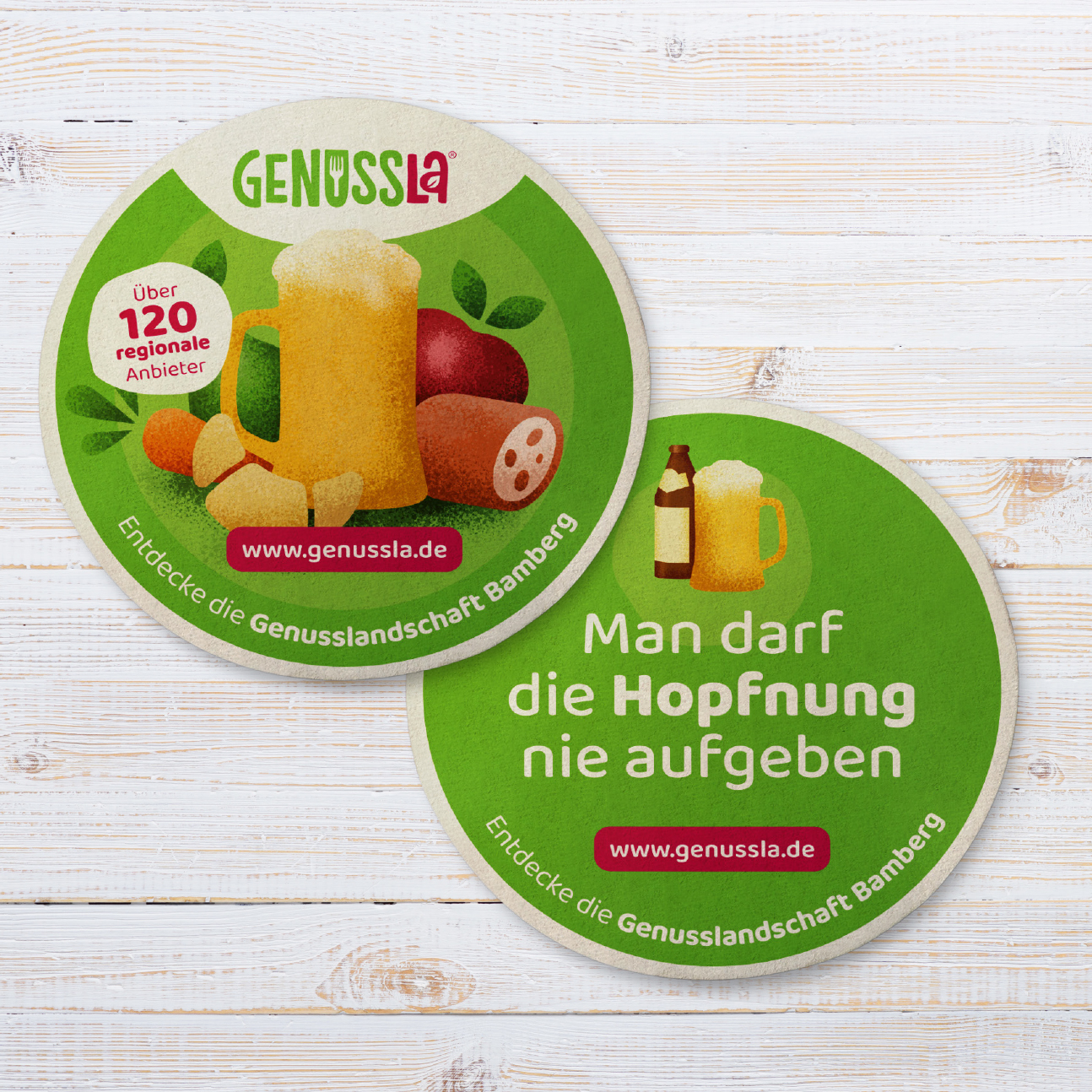 Für das Genussportal des Stadt- und Landkreises Bamberg übernahmen wir die Gestaltung der Marke „Genussla“. Von der Namensfindung über das Logo bis zur Website – ein ganzheitliches Genusserlebnis.